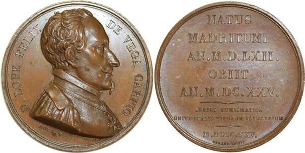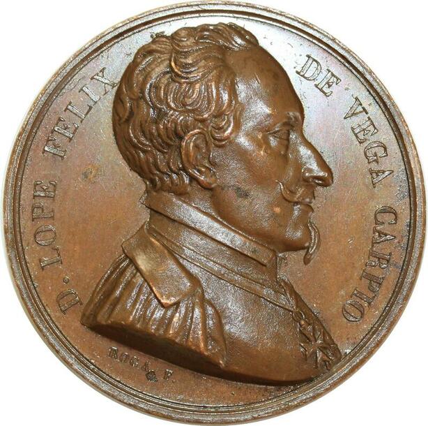 O5330 Scarce Medal Roga.Lope Vega 1562 1635 Writer Rogat Baron Desnoyers SPL