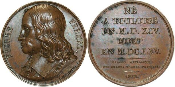 O5348 Rare Medaille Pierre Fermat Toulouse 1822 Dieudonné Baron Desnoyers SUP+