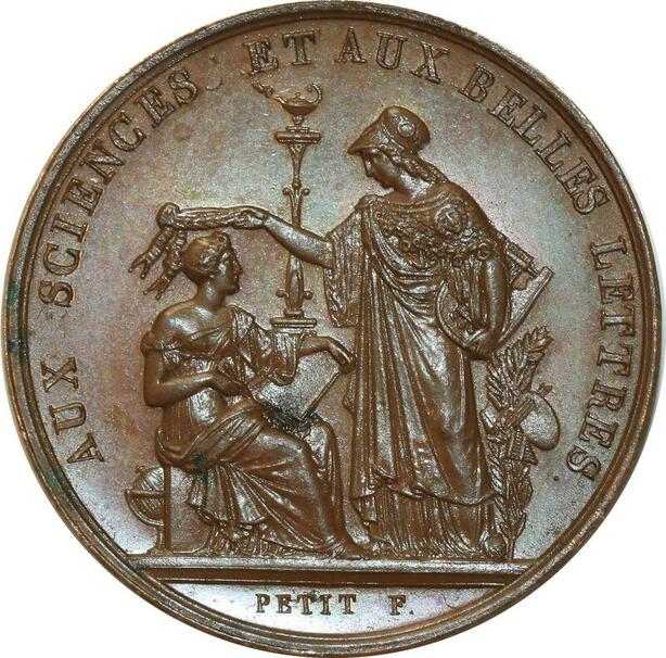 O5362 Rare Medaille Prix D'éloquence 1822 Sciences Belles Lettres Desnoyers SPL