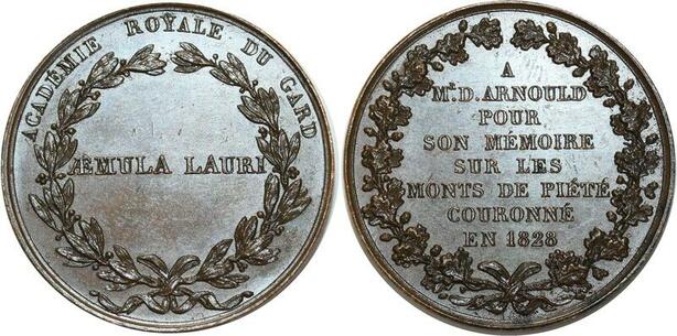O5367 Rare Medaille Arnoud Académie Royale Gard 1828 Baron Desnoyers SPL