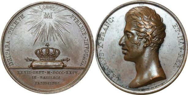 O5453 Rare Medaille Charles X Entré Paris 1824 depaulis Baron Desnoyers SUP