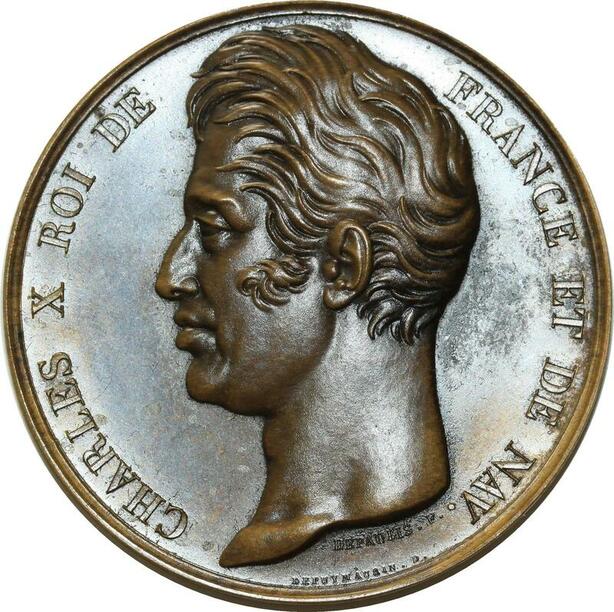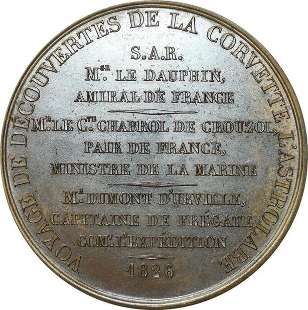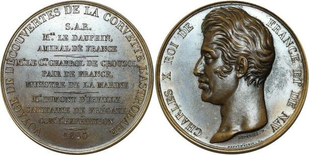 O5454 Rare Medaille Charles X corvette Astrolabe 1826 Baron Desnoyers SPL