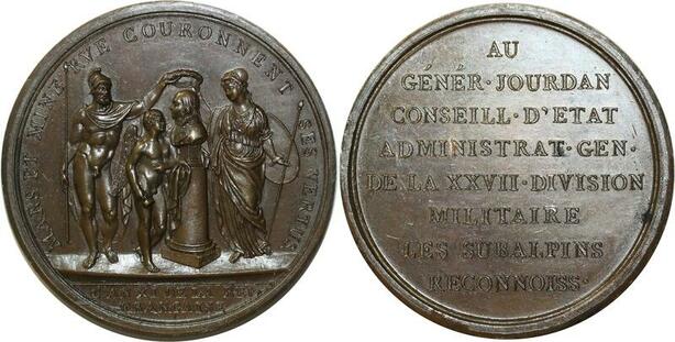 O5483 Très Rare Medal Italy Gén. Jourdan Piemont Mars Mine Lavy An XI Desnoyers