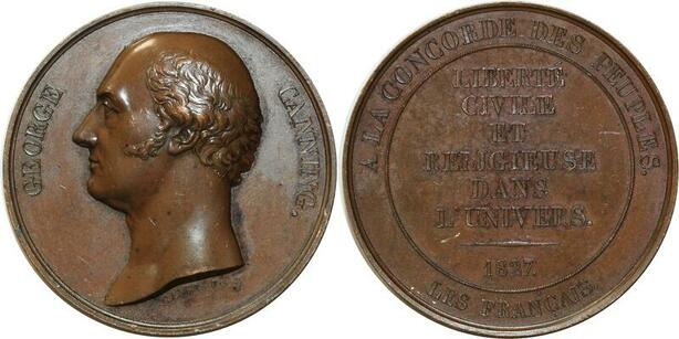 O5500 Scarce GB Medal George Canning Tribute 1827 Baron Desnoyers SPL