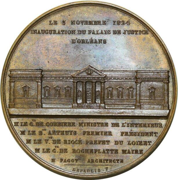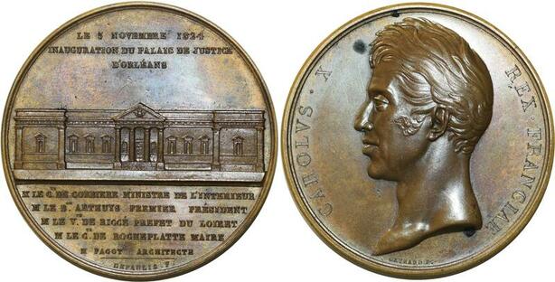 O5512 Rare Medal Charles X Inauguration Palais Justice Orléans 1824 Desnoyers