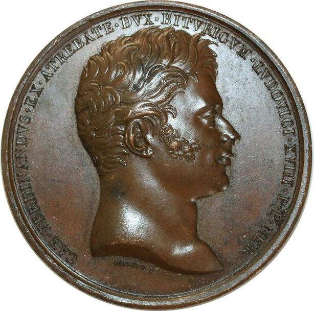 O5516 Rare Medaille Louis XVIII Décès duc Berry 1820 Paris Gayrard Desnoyers