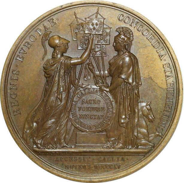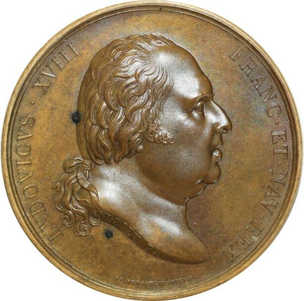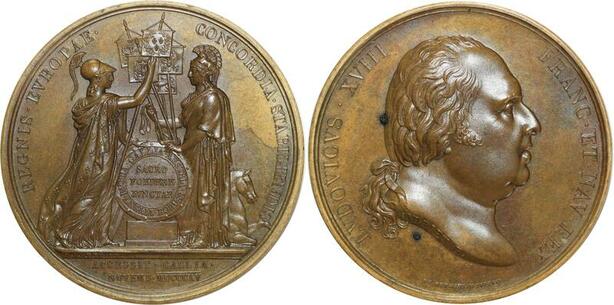 O5528 Rare Medal Louis XVIII Accession Ste Alliance 1815 Andrieu Desnoyers SPL