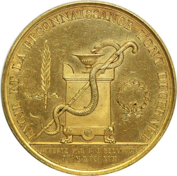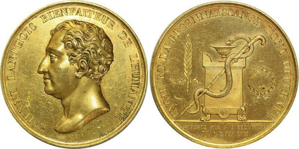 O5529 Rare Medal Louis XVIII Lanthois Médecin Paris 1817 Tiolier Desnoyers SPL