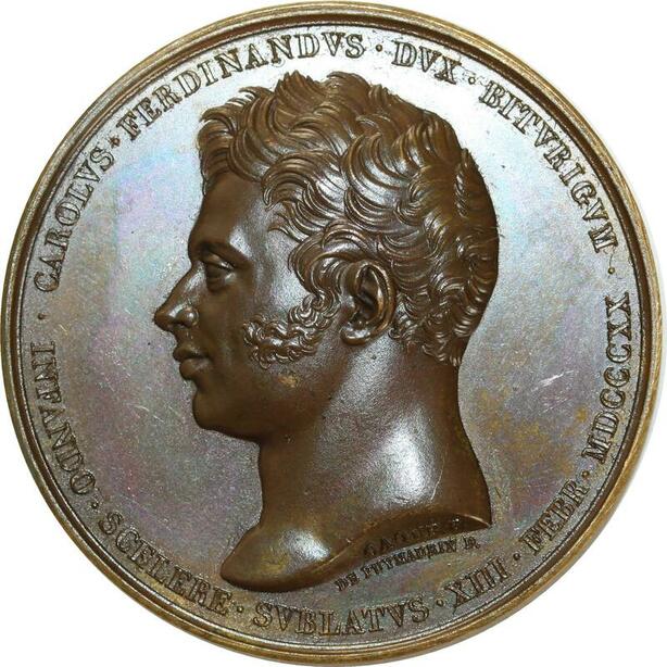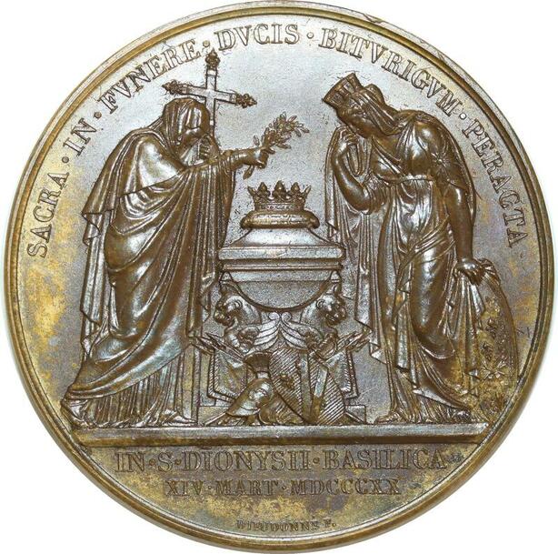 O5541 Rare Medal Louis XVIII Funerailles duc Berry 1820 Desnoyers SPL+