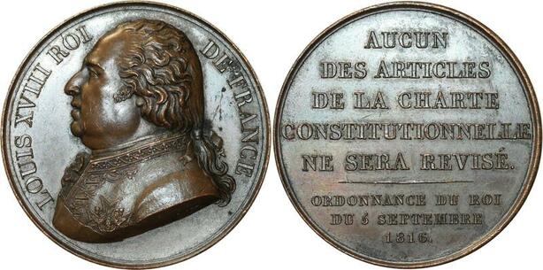 O5591 Medaille Louis XVIII royal french constitution 1816 Barre Desnoyers SPL