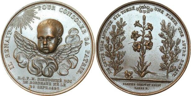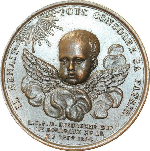 O5593 Rare Medaille Louis XVIII duc Bordeaux Blenne 1820 Baron Desnoyers SPL