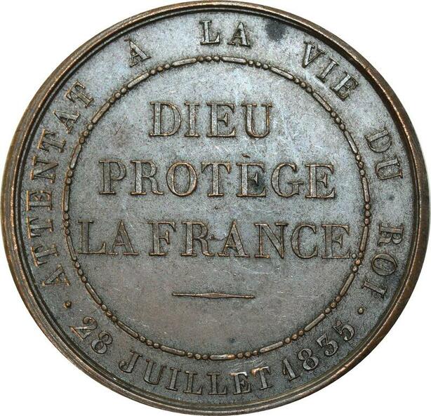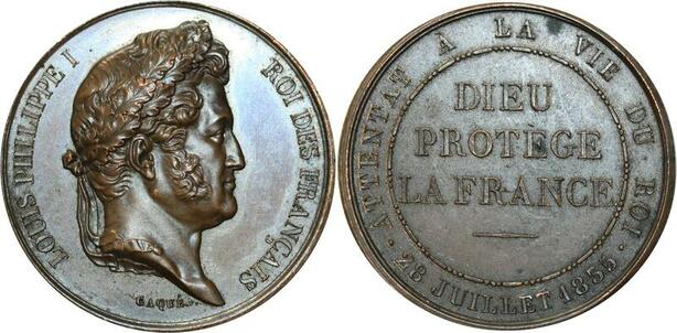 O5596 Rare Medaille Louis-Philippe Attentat vie du Roi 1835 Caqué Desnoyers SPL