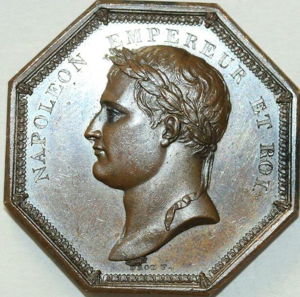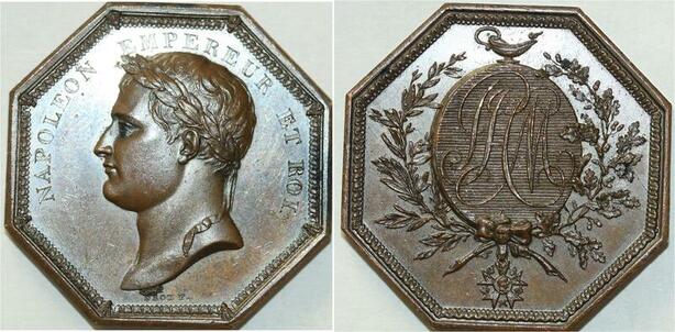 O5638 Rare Medaille Napoleon I Octogonal Piefort Ordre Droz Baron Desnoyers SPL