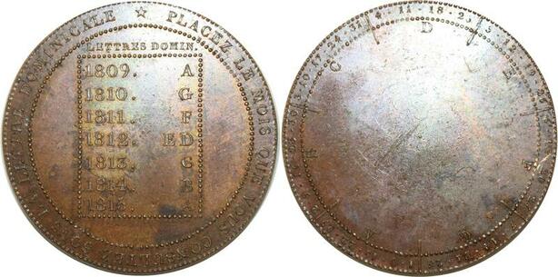 O5658 Unique Medaille Calendrier Napoleon 1809 1815 Desnoyers PCGS MS63