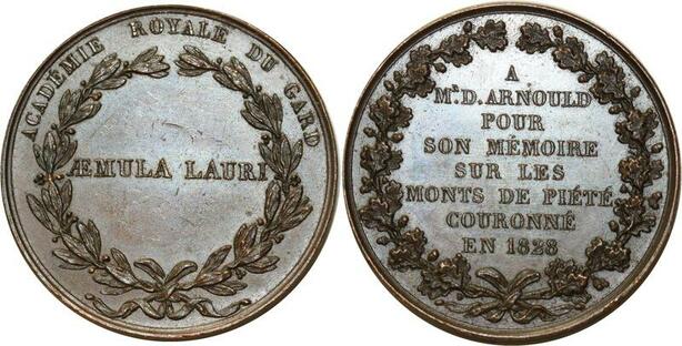 O5678 Rare Medaille Academie Gard Arnoud Monts Piété 1828 Baron Desnoyers SPL