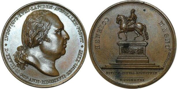 O5679 Rare Medal Louis XVIII Henri IV Statut Andrieu 1817 Desnoyers SPL