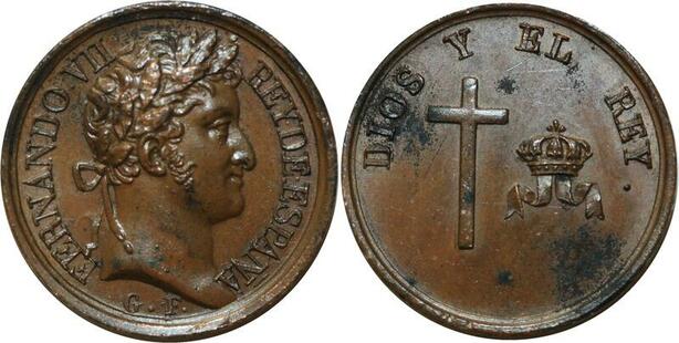 O5695 Scarce Token Espana Fernando VII Dios y el rey Baron Desnoyers UNC