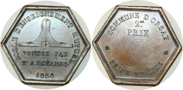 O5705 Rare Jeton Louis-Philippe 1834 Archange Orsay 2eme prix Desnoyers SUP