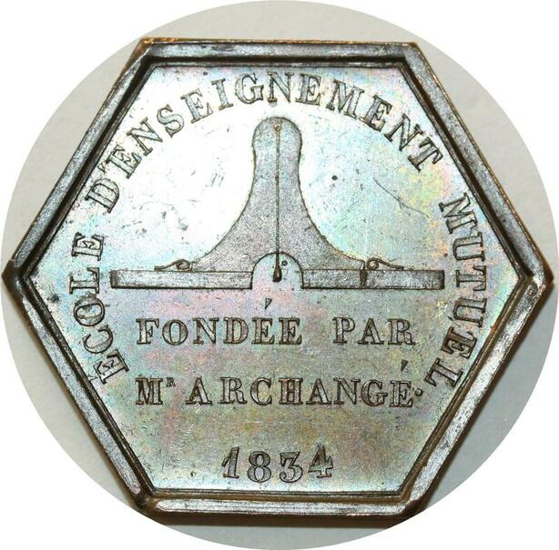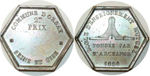 O5709 Rare Jeton Louis-Philippe 1834 Archange Orsay 2eme prix Desnoyers SUP