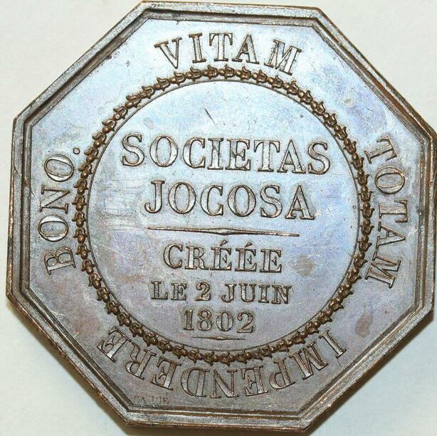O5735 Très Rare Medaille Sociétas Jogosa 1802 Napoleon Baron Desnoyers SPL