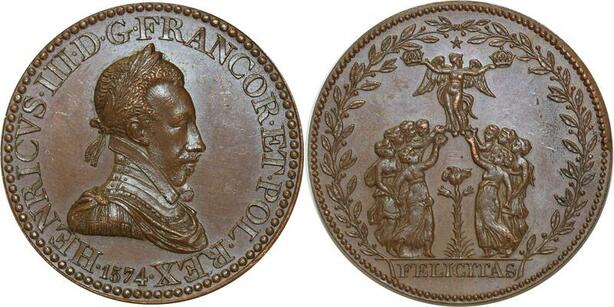 O5766 Rare Medaille Henri III Roi Félicitas 1574 Baron Desnoyers SPL