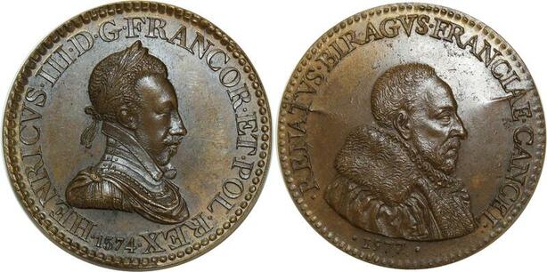 O5770 Rare Medaille Henri III René de Birague 1574 1577 Baron Desnoyers SPL