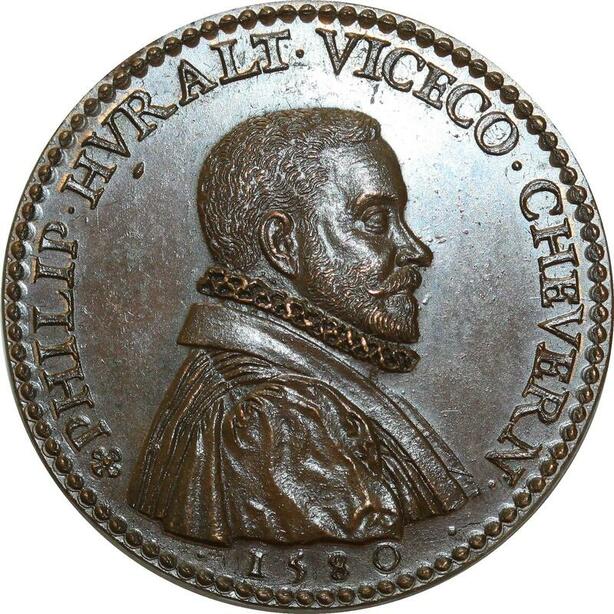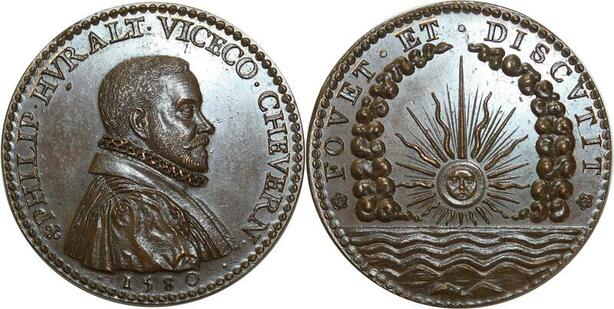 O5775 Rare Medaille Philippe Huralt duc Cheverny 1580 Baron Desnoyers SPL