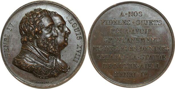 O5780 Medaille Henri IV Louis XVIII Statue Baron Desnoyers SPL ->Make offer