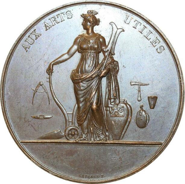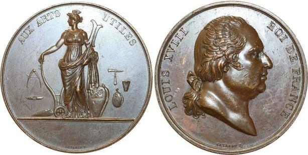 O5818 Rare Medaille Louis XVIII Aux Arts Utiles Gayrard Baron Desnoyers