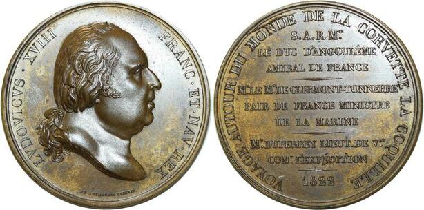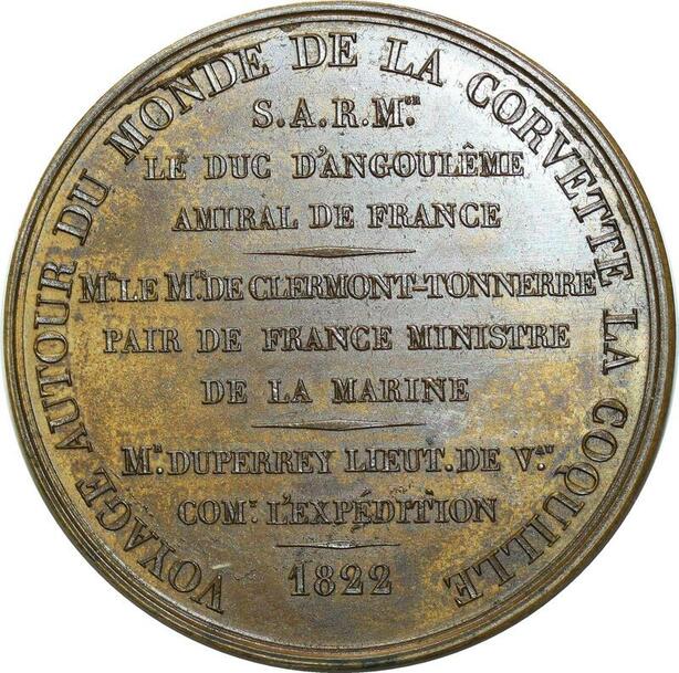 O5827 Rare Medaille Louis XVIII voyage corvette Astrolabe 1822 Baron Desnoyers