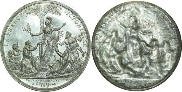 O5869 Rare Medaille Uniface Napoleon I Paix LunéVille An 9 1801 Desnoyers SPL