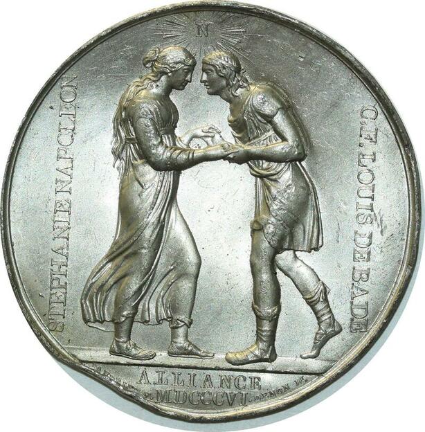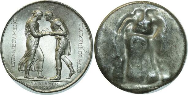 O5919 Rare Medaille mariage Stéphanie Bade 1806 Andrieu Baron Desnoyers SUP
