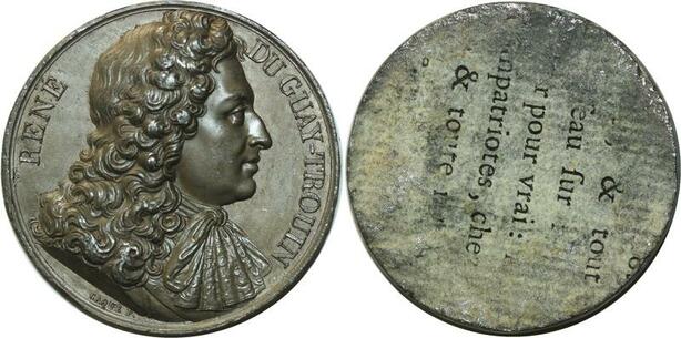 O5925 Rare Medaille Uniface René du Guay Trouin Caqué Baron Desnoyers SPL