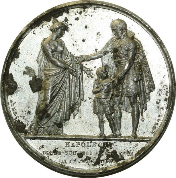 O5945 Rare Medaille Uniface Napoleon I Abdication Brenet Baron Desnoyers SPL