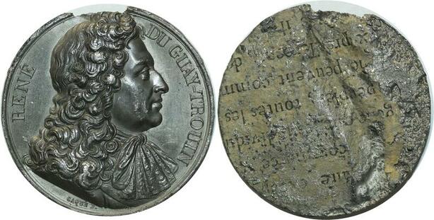 O5949 Rare Medaille Uniface René du Guay Trouin Caqué Baron Desnoyers SPL