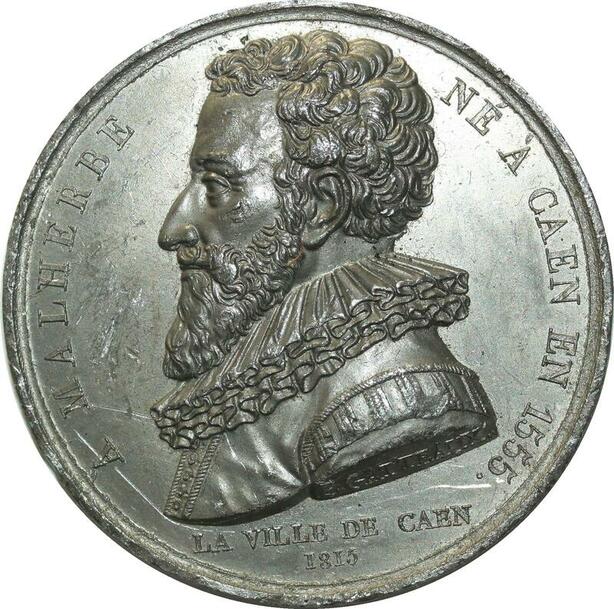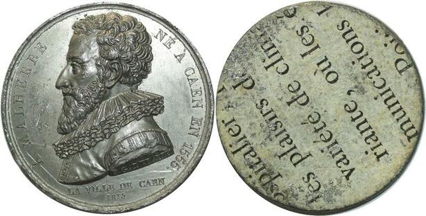 O5954 Rare Medaille Uniface Malherbe Caen 1815 Baron Desnoyers SPL ->Make offer