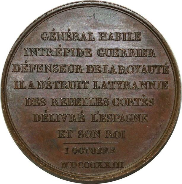 O5970 Rare Medaille duc Angoulème Andrieu Spain 1823 Baron Desnoyers SUP