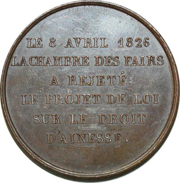 O5980 Medaille Charles X Chambre des pairs DRoit Ainesse Baron Desnoyers SPL