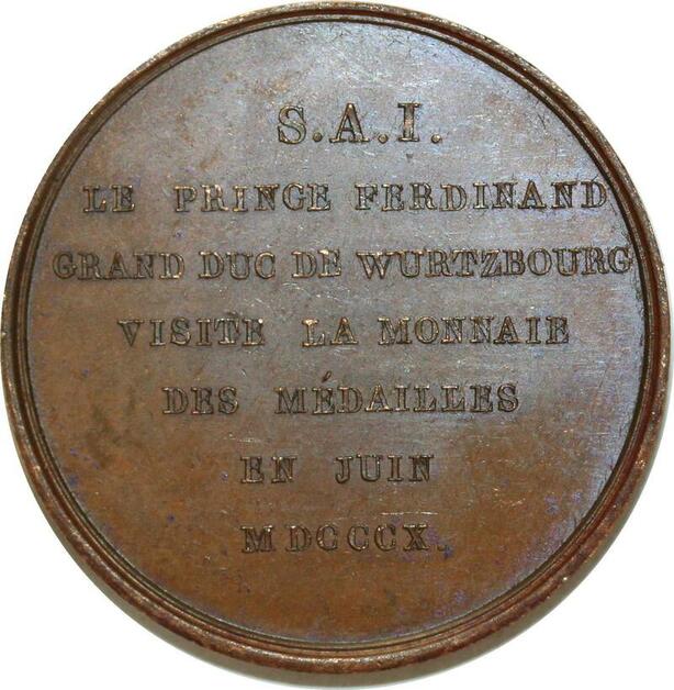 O5997 Rare Medaille Ferdinand duc Wurtzbourg Monnaie Paris 1810 Desnoyers SPL