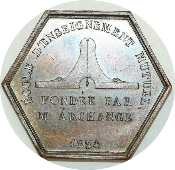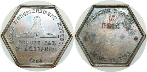 O5999 Medaille 1er Prix Enseignement Mutuel Archange 1834 Orsay Desnoyers SUP