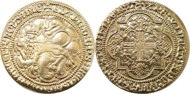 Q0077 Rare England Leopard d'Or Edward Black Prince 1362-1372 Gold MDP UNC
