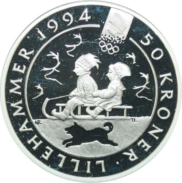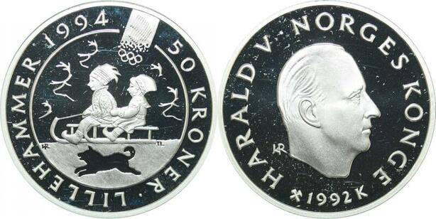 Q0163 Norway Olympics Games 50 Kroner Harald V Lillehammer 1994 Silver PF