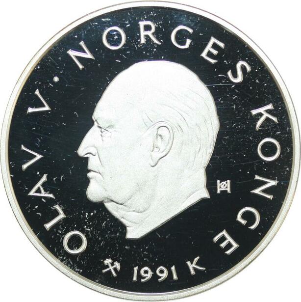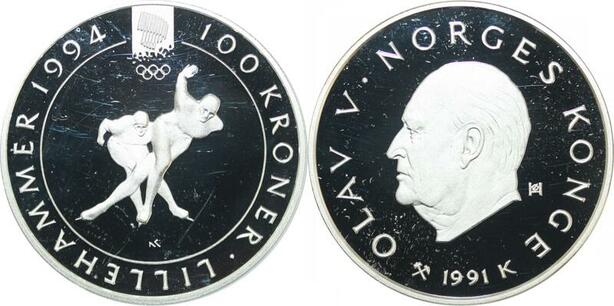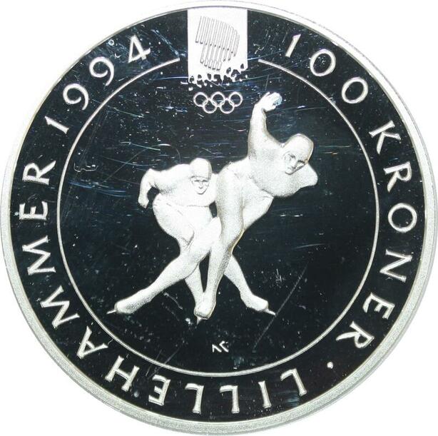 Q0167 Norway Olympics Games 100 Kroner Olav V Lillehammer 1994 Silver PF BE