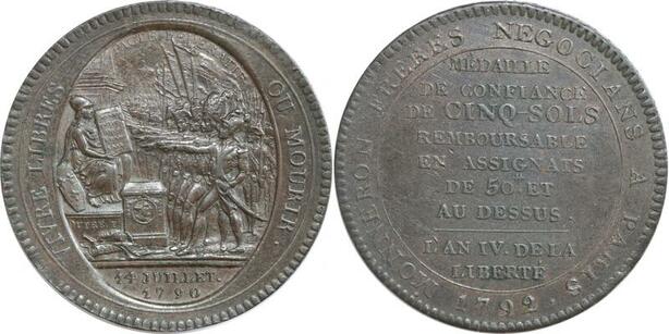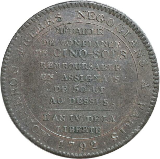 Q0377 Constitution 5 Sols Monneron serment an IV 1792 Birmingham SUP