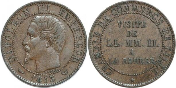 Q0393 Rare Module 5 centimes Napoléon III 1853 Bourse Lille fr. méd. SUP