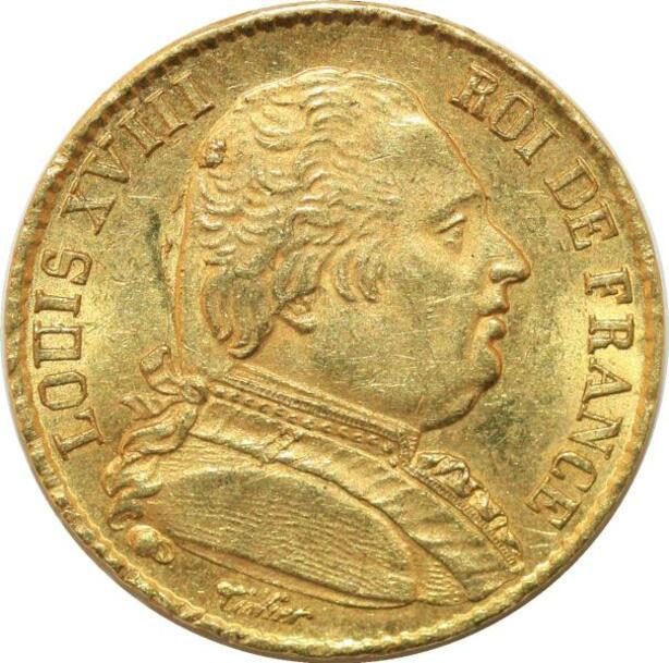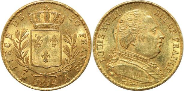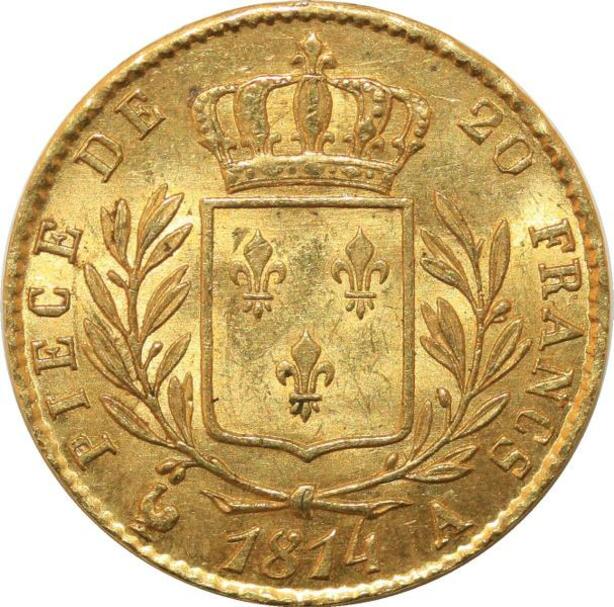 Q0403 Rare 20 Francs Louis XVIII 1814 A Paris Or Gold PCGS MS62