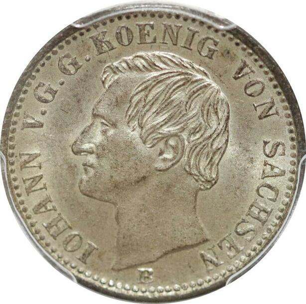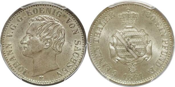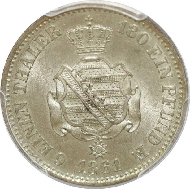Q0417 Finest Germany Saxony Albertine 1/6 Thaler Johann V 1861 B PCGS MS64