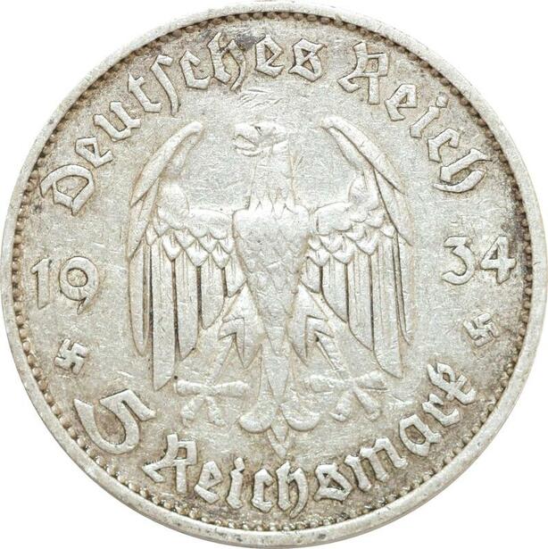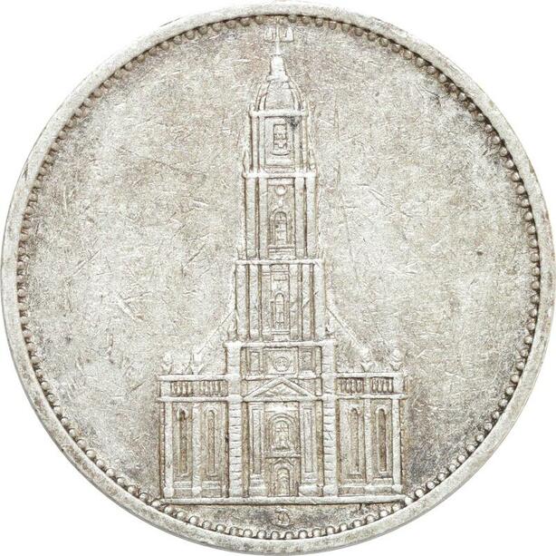 Q0500 Germany Bayern 5 Reichsmark Potsdam Garrison Church 1934 D Silver