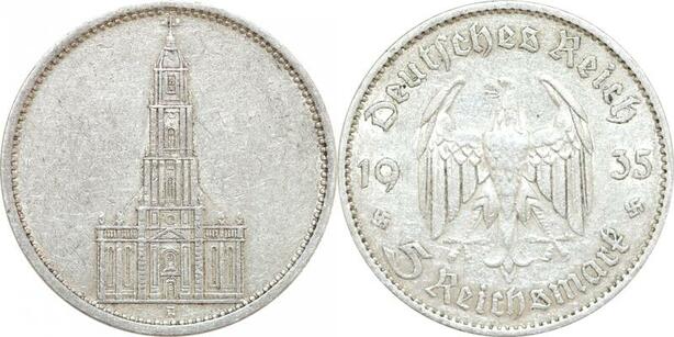 Q0501 Germany Berlin 5 Reichsmark Potsdam Garrison Church 1935 A Silver