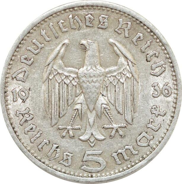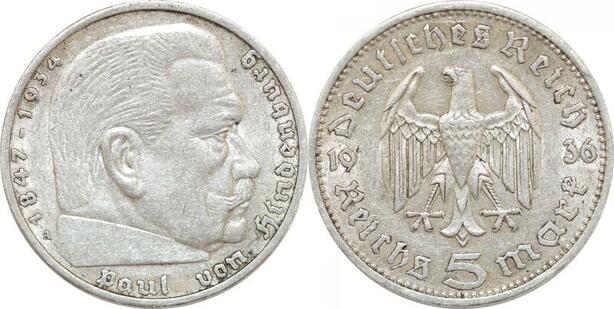 Q0503 Germany Berlin 5 Reichsmark Hinbenburg 1936 A Silver AU > Offer